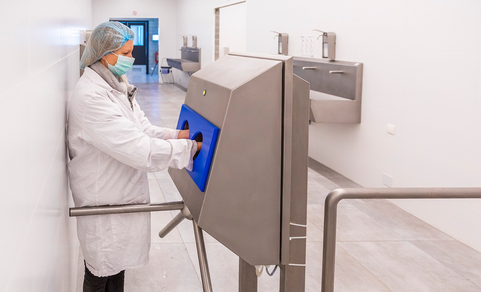 Los tomates son verduras delicadas y, si se presta poca atención, su lavado puede ser susceptible a la contaminación. Además, las entradas a las zonas de producción se aseguran gracias a los dispensadores de productos químicos de Elpress, que solo permiten el paso cuando se han desinfectado las manos. Así el personal accede a la zona de trabajo con las manos estériles.