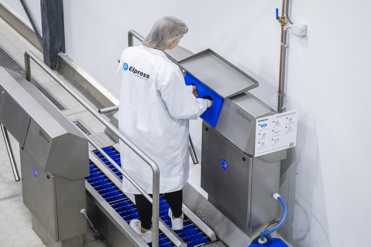Il en résulte une forte pression de contamination, qui nécessite à la fois un nettoyage et une désinfection. Les entrées hygiéniques sont utilisés ici pour éliminer la contamination par le personnel et pour réduire le transfert de bactéries entre les zones de production.