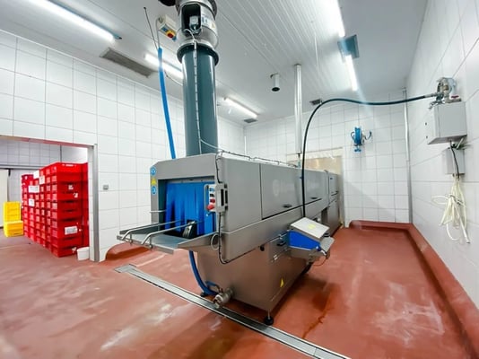 Les laveuses de bacs automatiques d'Elpress sont construites en plaques et profils en acier inoxydable solides, montés sur des pieds réglables. Dans la machine, les bacs sont nettoyés de manière optimale, éliminant toute saleté. Ensuite, ils sont rincés à l'eau propre. La laveuse de bacs élimine toute saleté en un seul cycle de lavage, qu'il s'agisse de protéines, de résidus de sang, de graisses, de résidus d'autocollants et de colle, ou de saleté incrustée. En choisissant une laveuse de bacs alimentaire sûre d'Elpress, vous optez pour un processus de lavage bien pensé avec un résultat optimal.